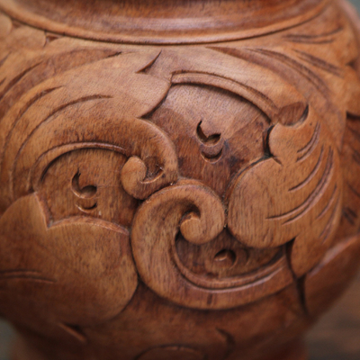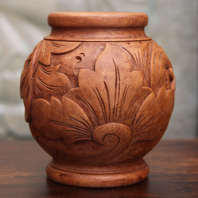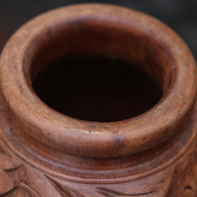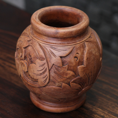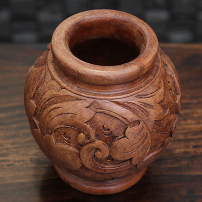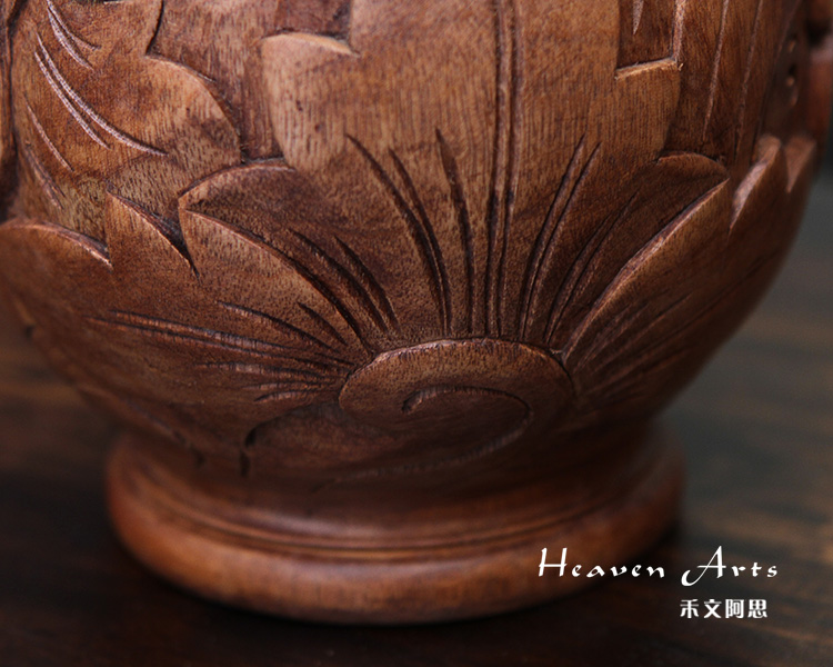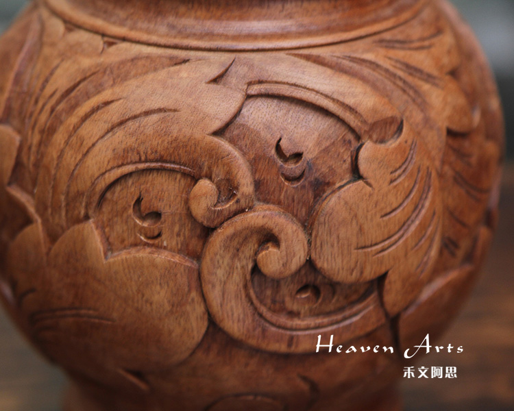 做工精致细腻,款式精美雅致的此款菩提木精雕花瓶,以花叶为雕刻主题,构筑居室馥郁自然氛围。同时,在我国花瓶的“瓶”与平安的“平”谐音,据说把花瓶放在家居或办公的地方,有“平平安安”之意。