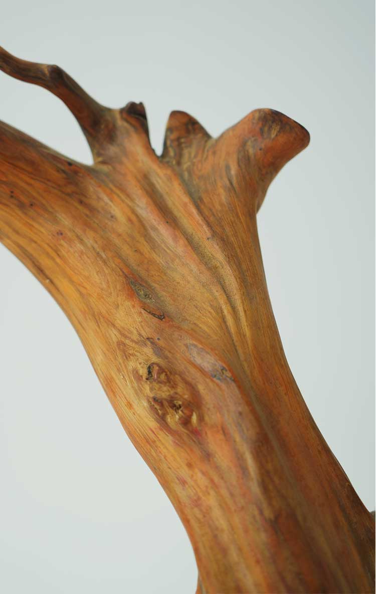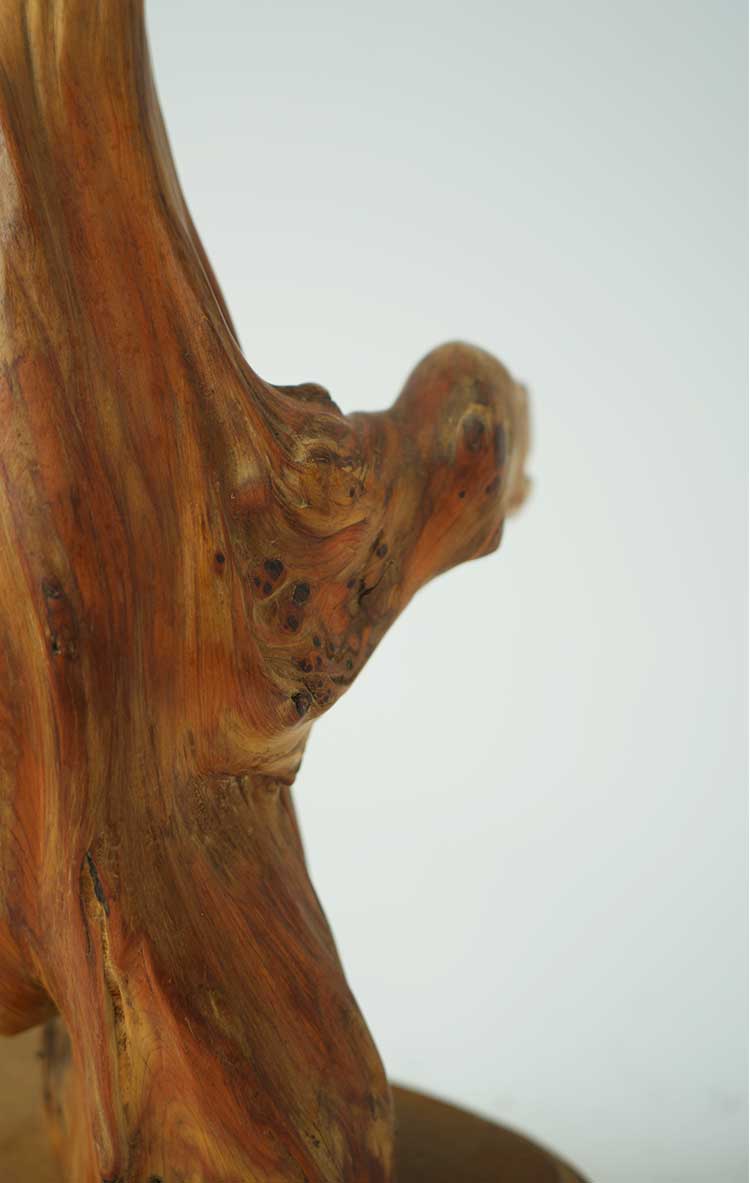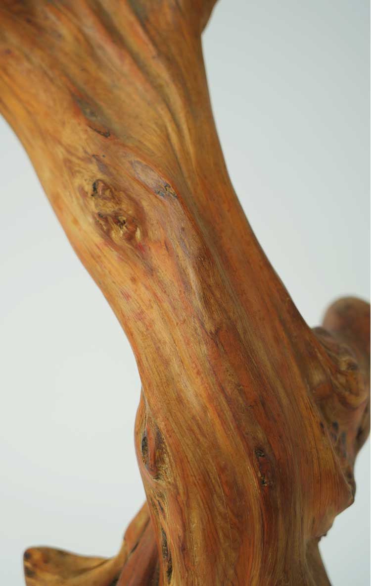 一般来说,业内以崖柏的产地分为太行料、重庆城口料、川料、藏南料等,毋庸置疑的是,最好的料子当属太行崖柏。太行山险峻雄伟,高崖深不可测,岩壁几乎垂直于地面,土壤无法留存于崖壁,所以太行料生长环境复杂,蜿蜒于崖壁之上,因而太行很难出大料。太行崖柏由于天然造型多变,且陈化时间长,密度大、油性足,气味香甜。