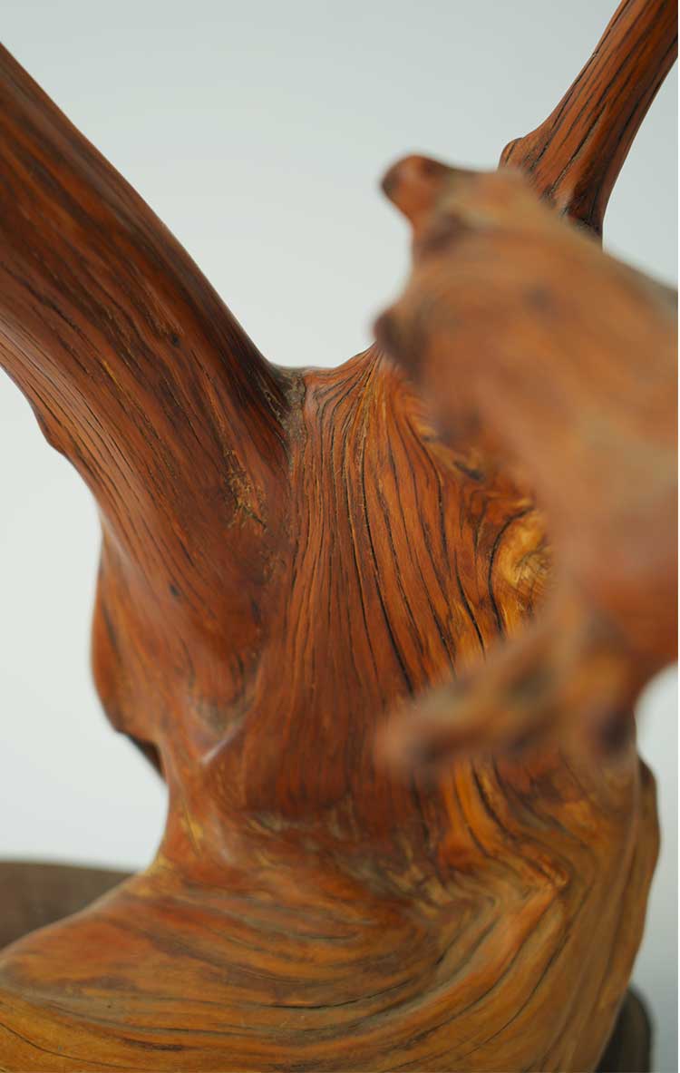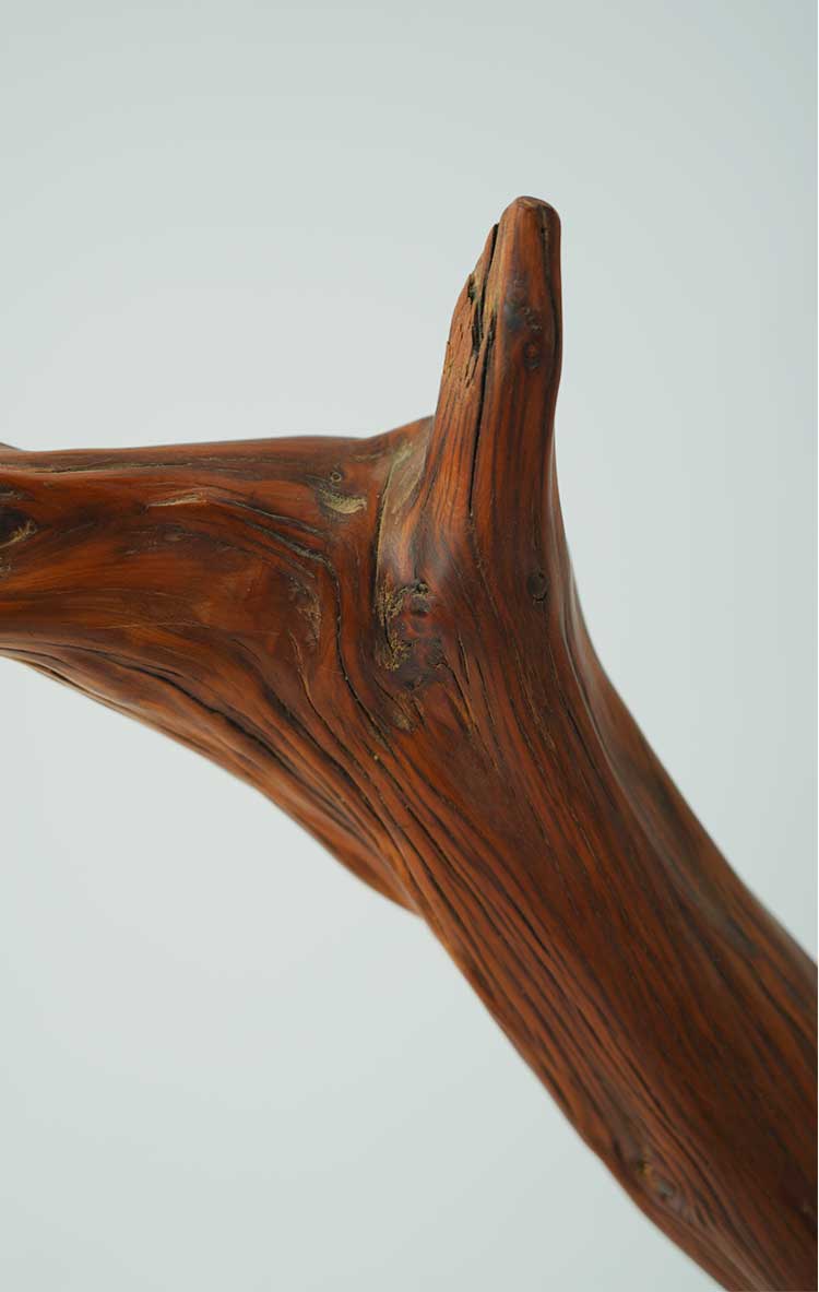 一般来说,业内以崖柏的产地分为太行料、重庆城口料、川料、藏南料等,毋庸置疑的是,最好的料子当属太行崖柏。太行山险峻雄伟,高崖深不可测,岩壁几乎垂直于地面,土壤无法留存于崖壁,所以太行料生长环境复杂,蜿蜒于崖壁之上,因而太行很难出大料。太行崖柏由于天然造型多变,且陈化时间长,密度大、油性足,气味香甜。