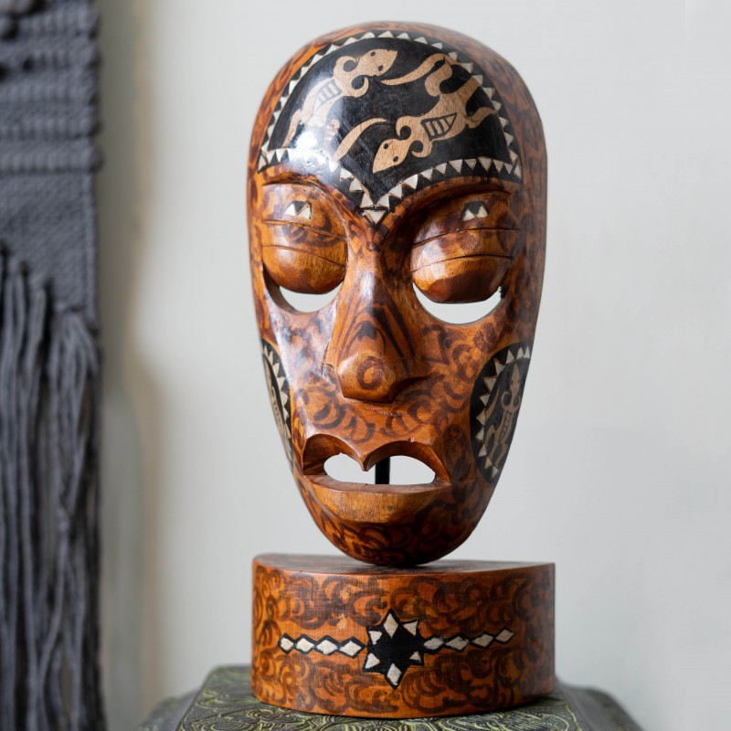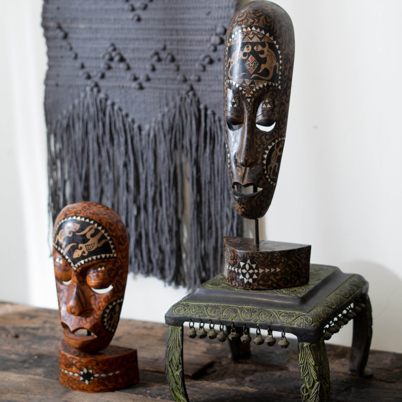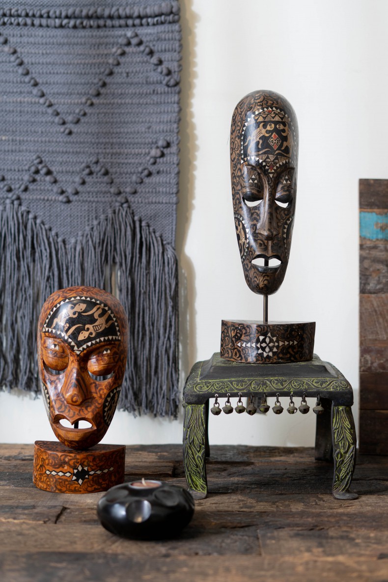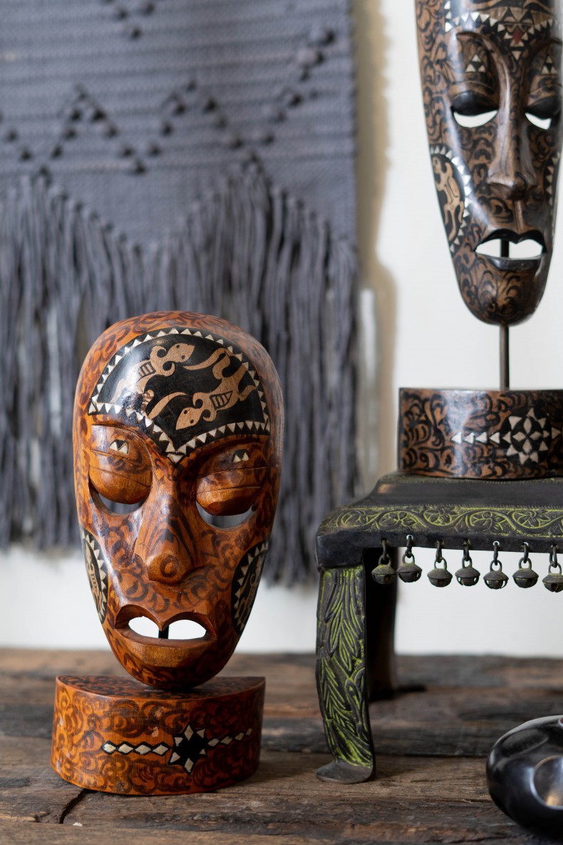 东南亚复古创意抽象实木面具摆件客厅家居酒柜装饰品挂饰手工品