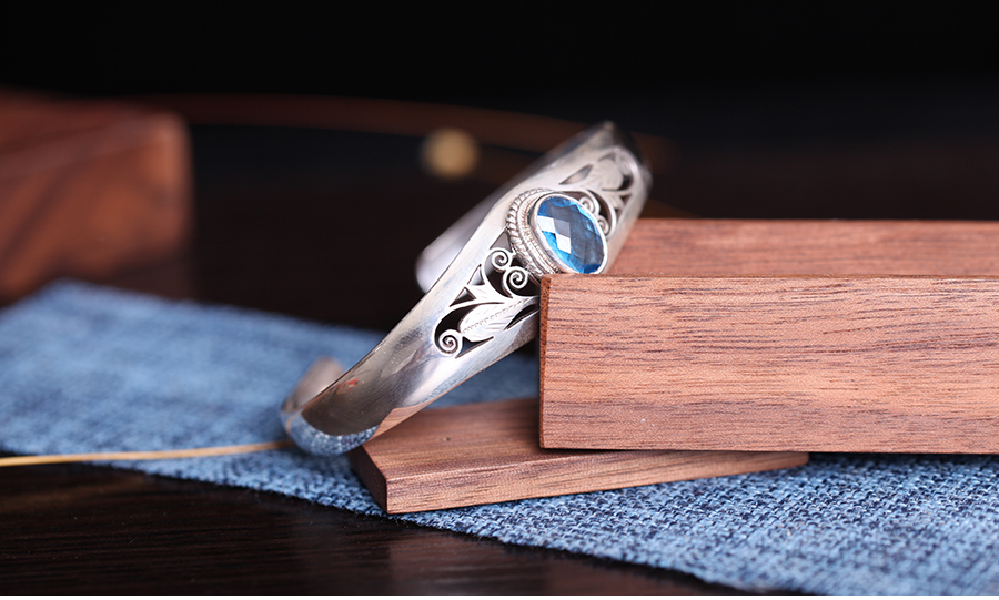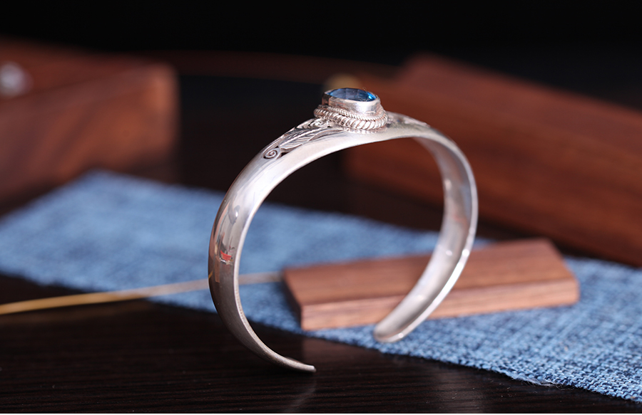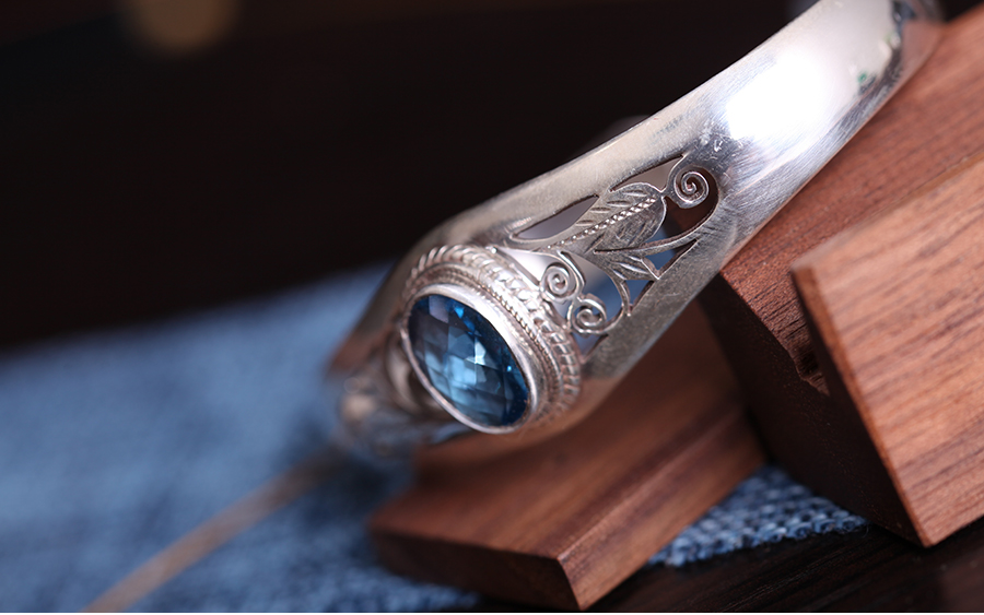 嵌托帕石银手镯-清秀之鸢