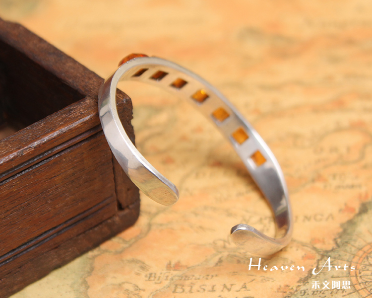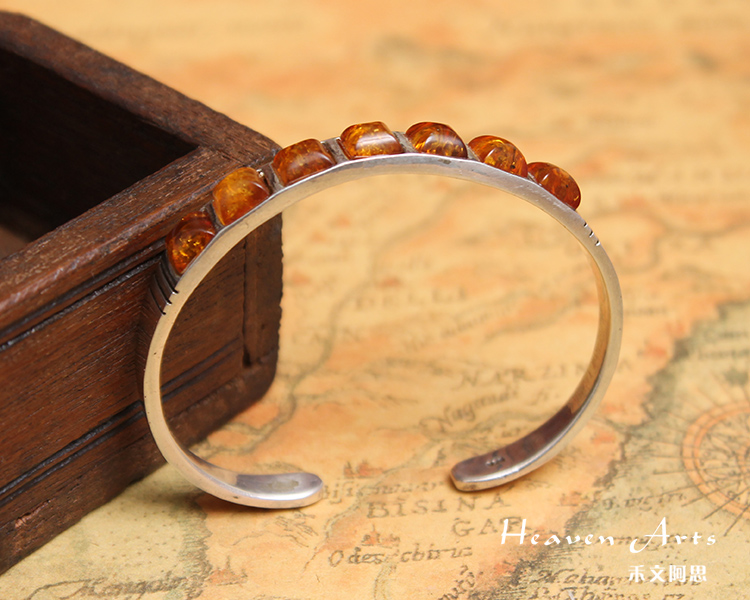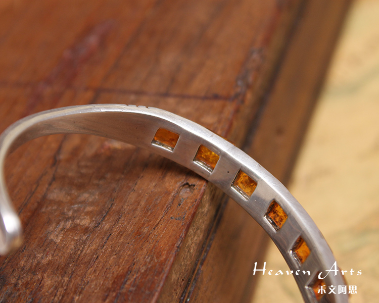 嵌琥珀银手镯