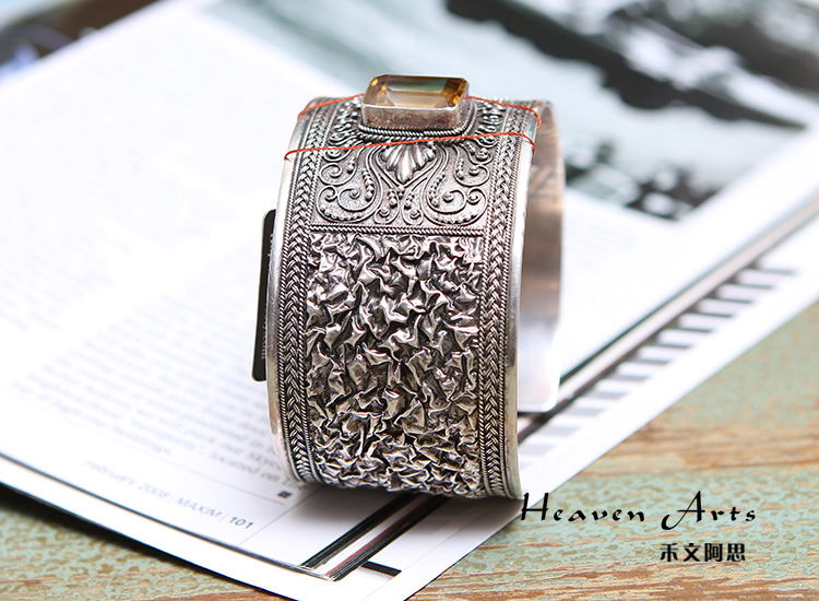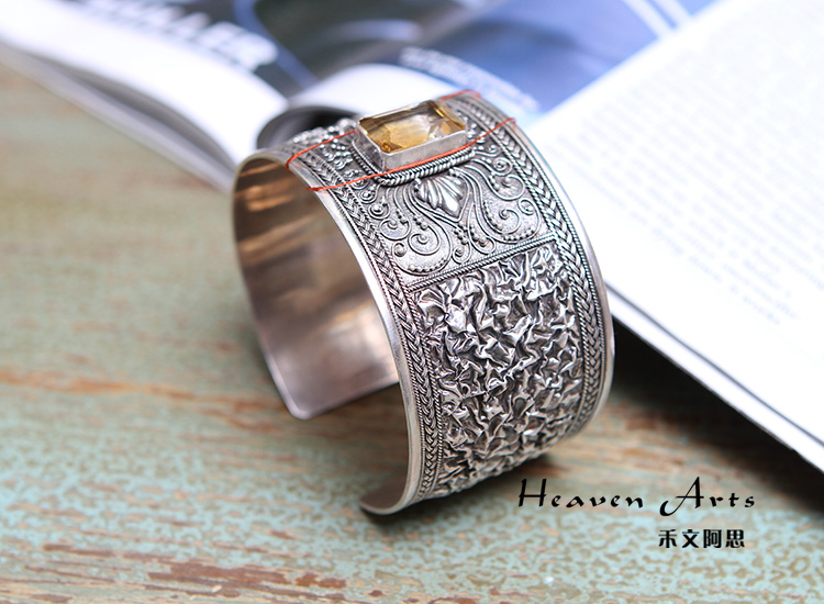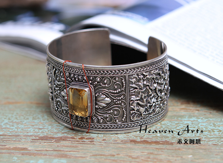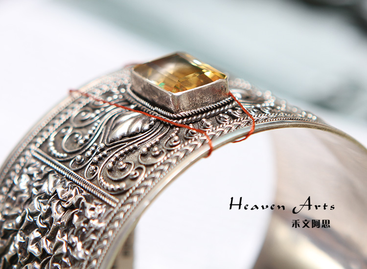 嵌黄水晶银手镯-空桑瑾穑