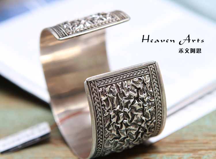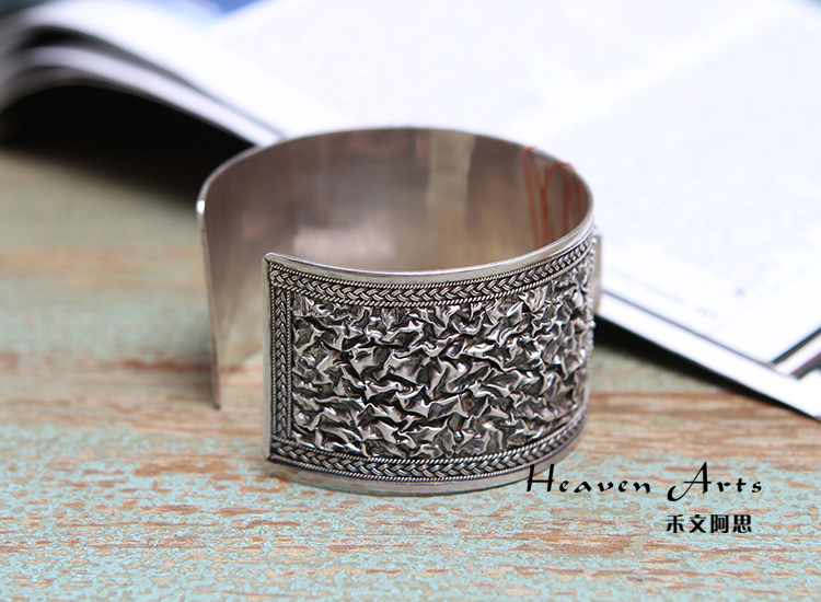 雕花绿松石银手镯