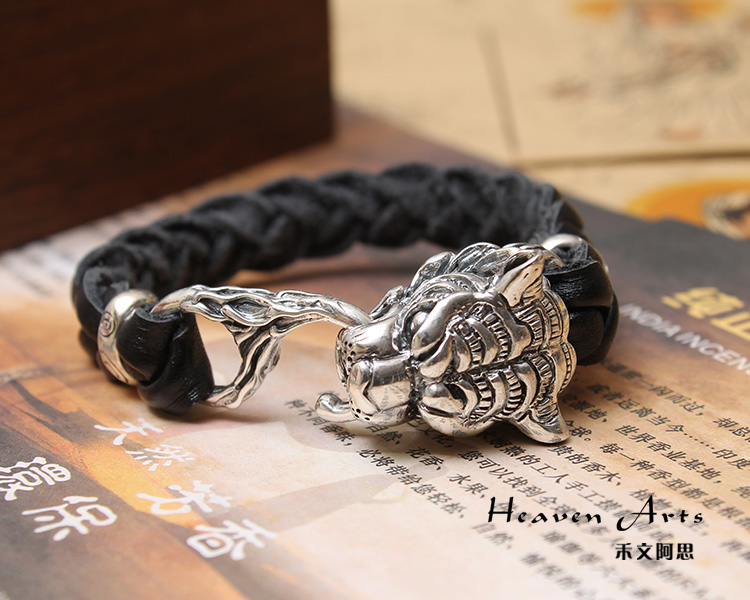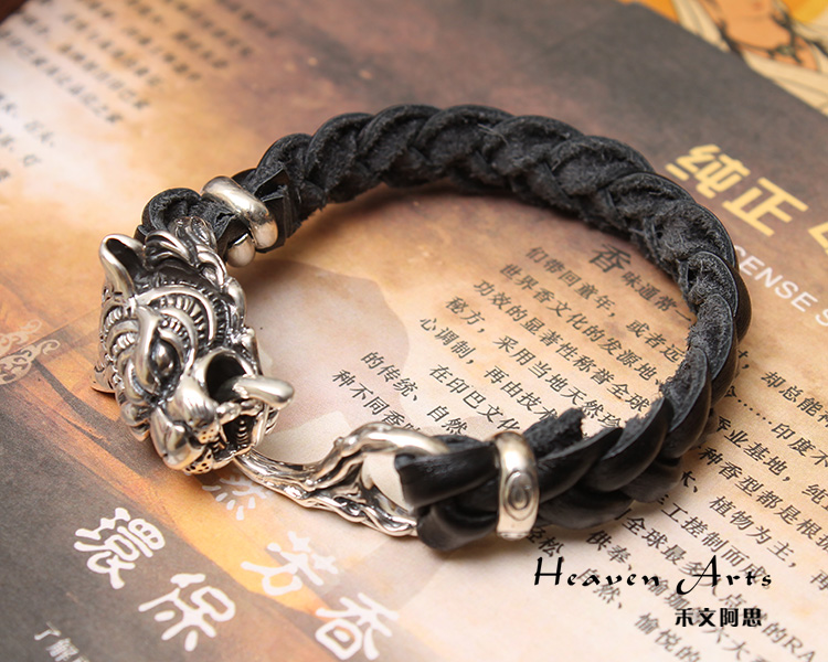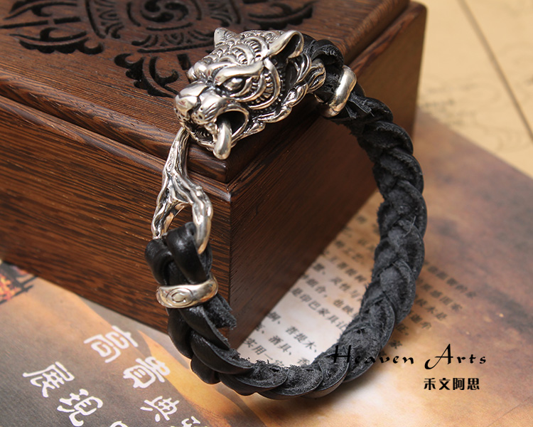 925银真皮老虎手链-森林之王