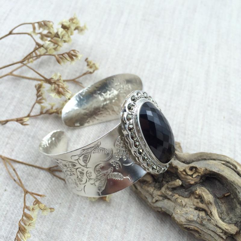 嵌黑玛瑙银手镯