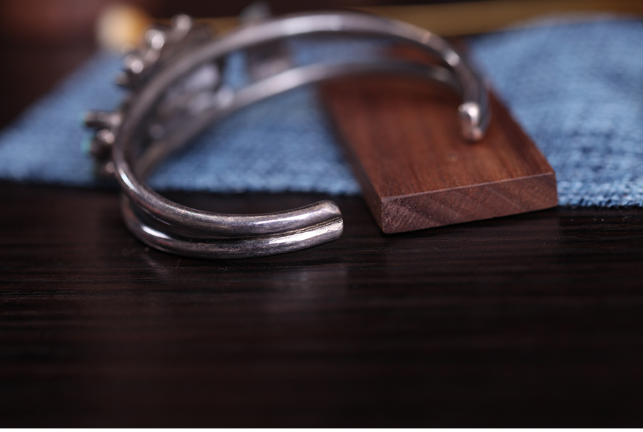 雕花绿松石银手镯