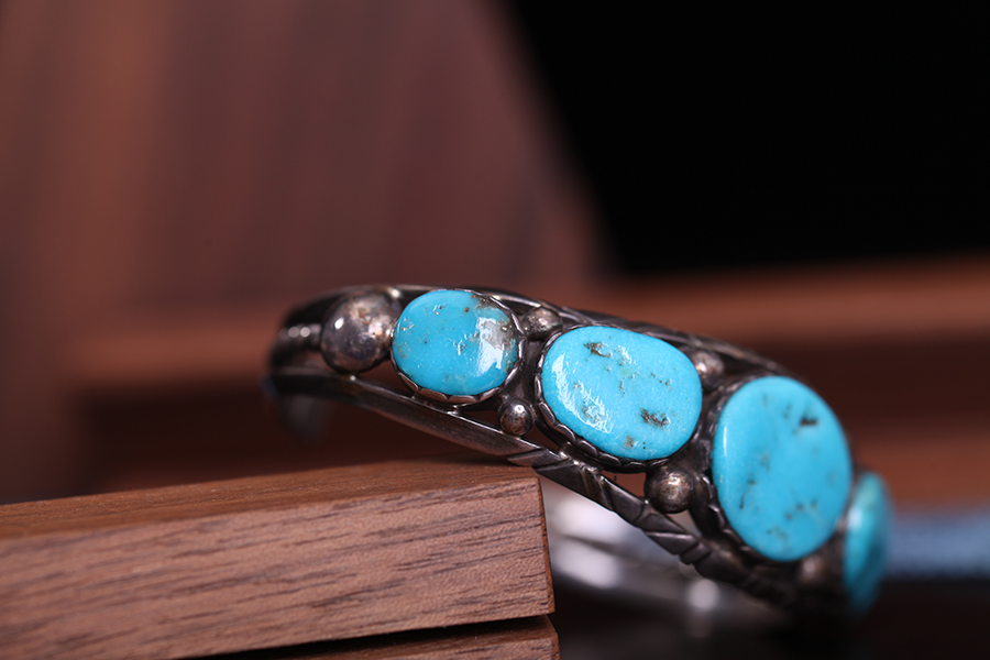 雕花绿松石银手镯