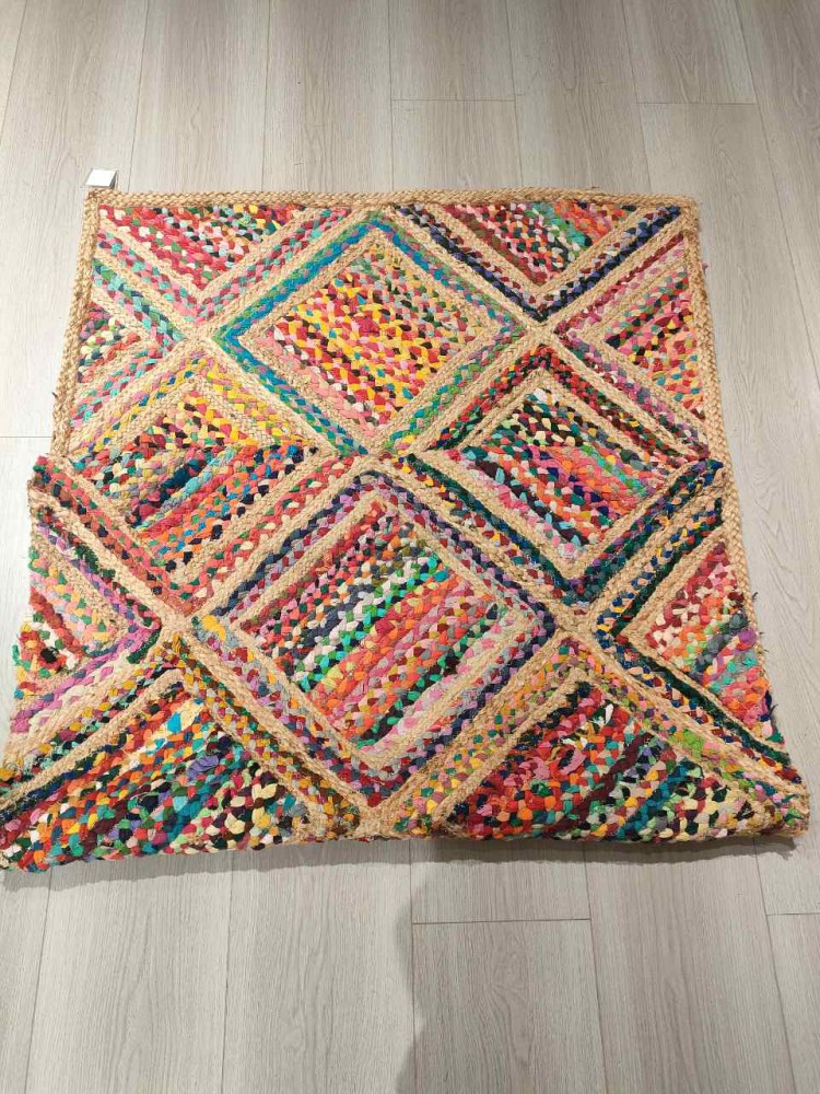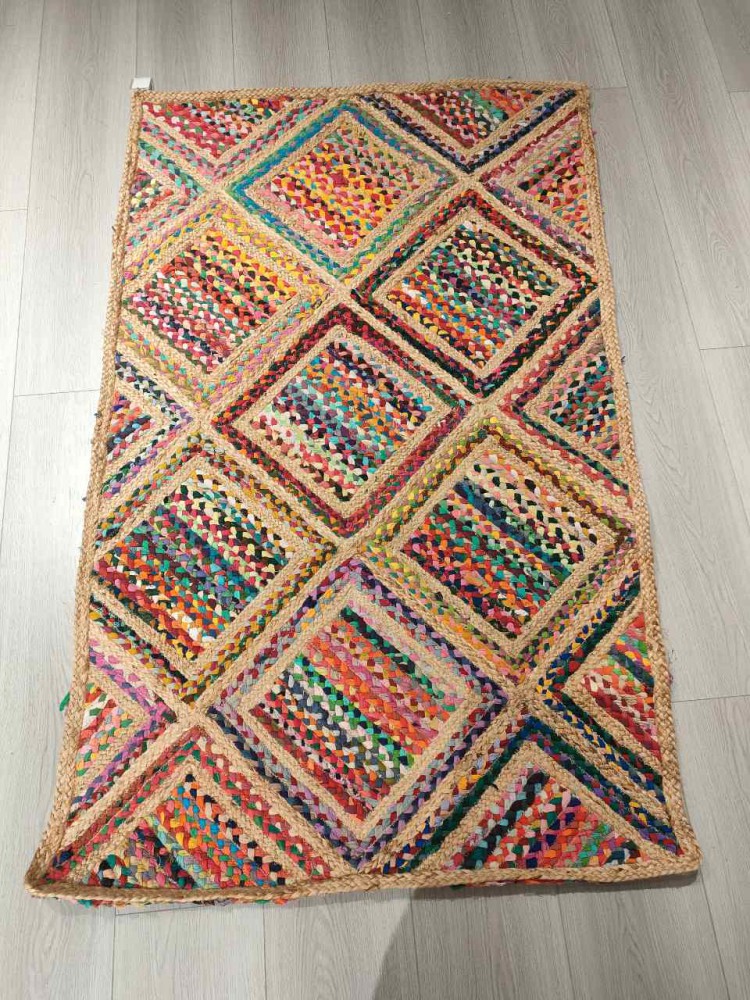 冥想毯瑜伽毯印度黄麻手工编织方形棉布地毯153*90cm