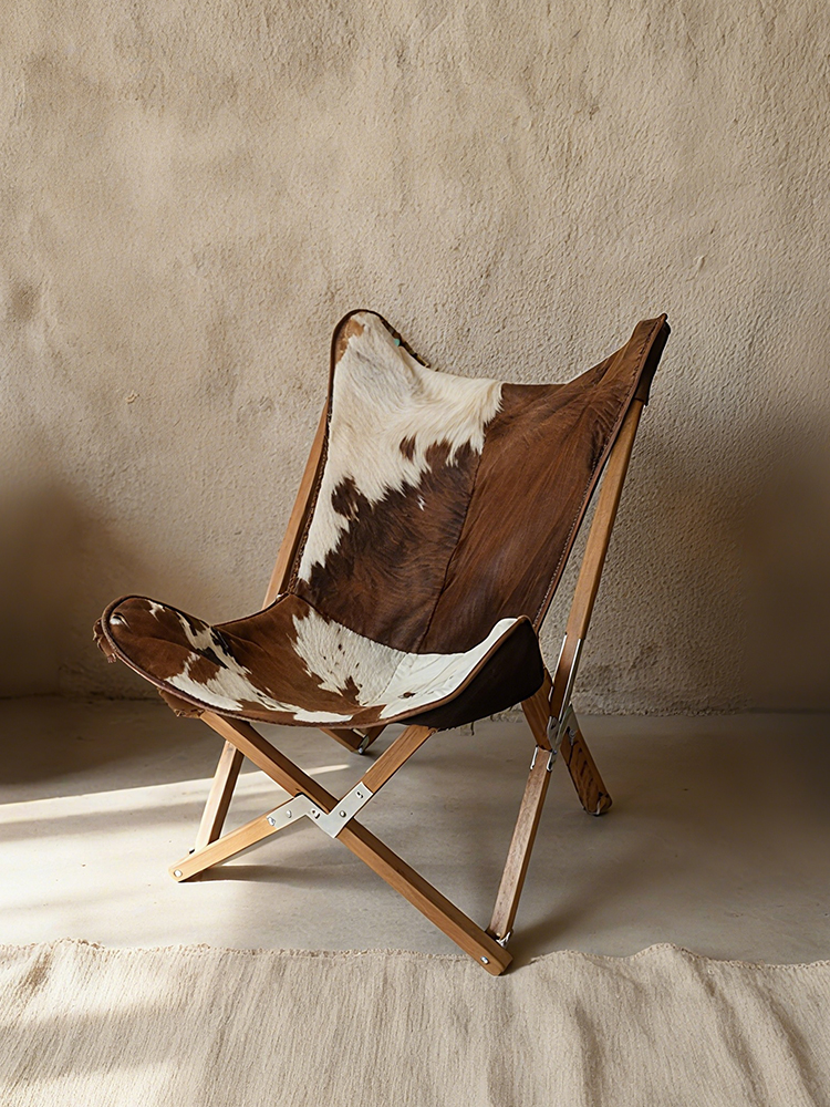 蝴蝶真皮休闲躺椅奶牛皮椅子沙滩椅59*56.5*91cm