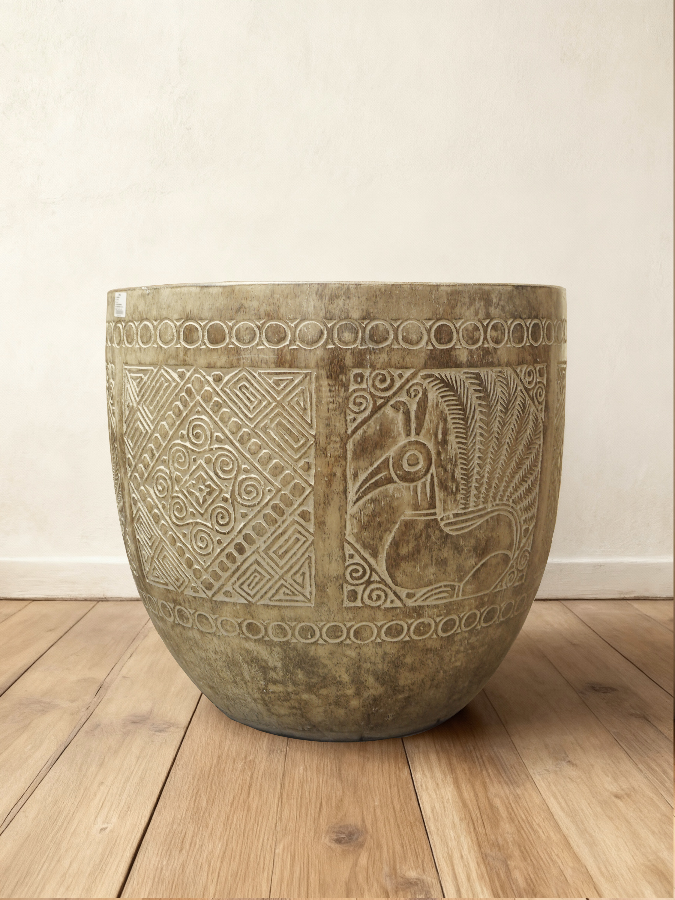 大王椰树木雕花瓶摆件61*58.5cm