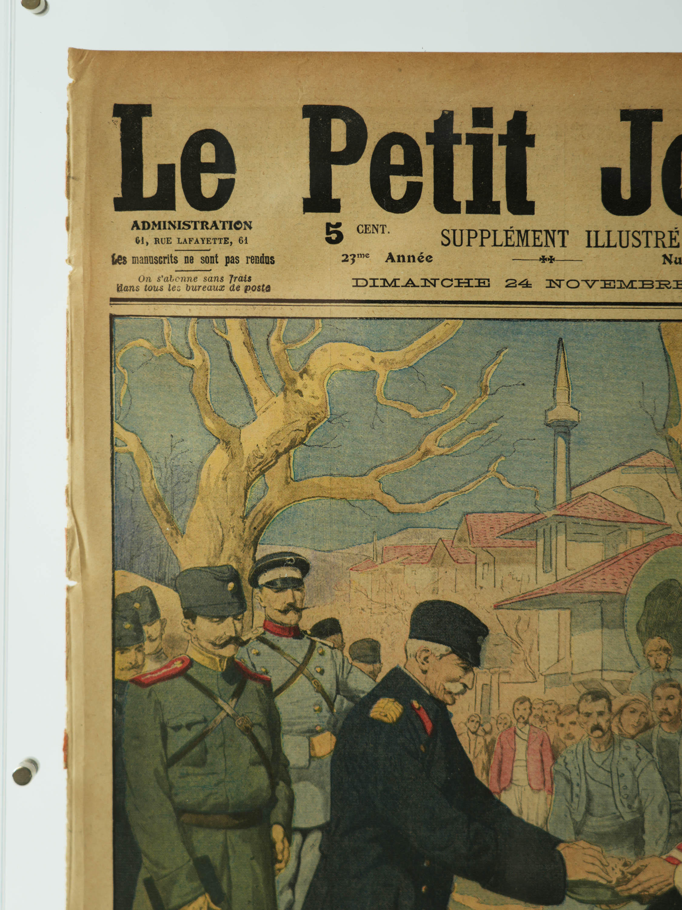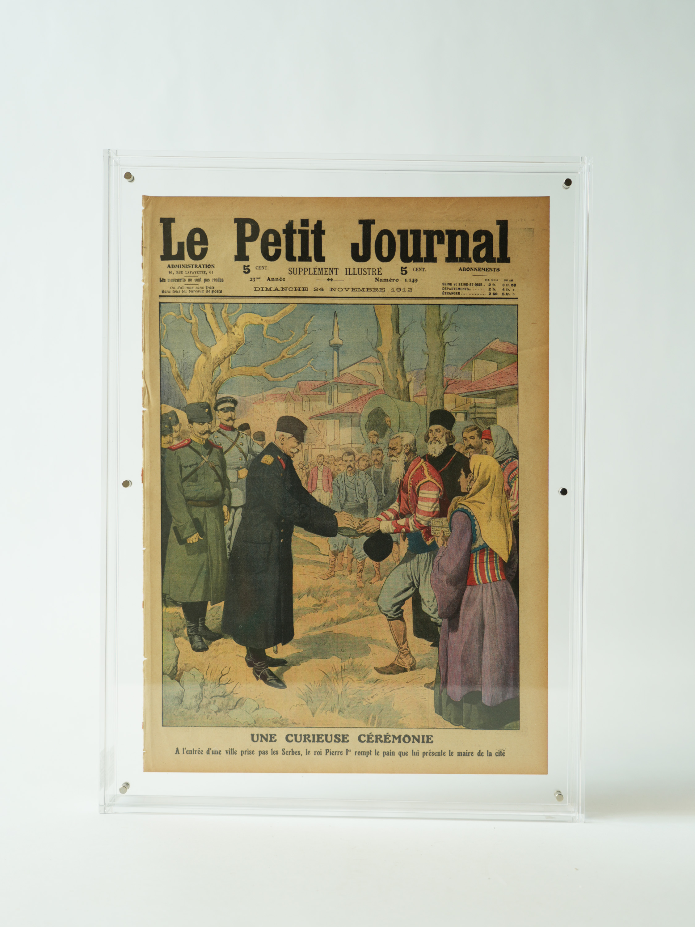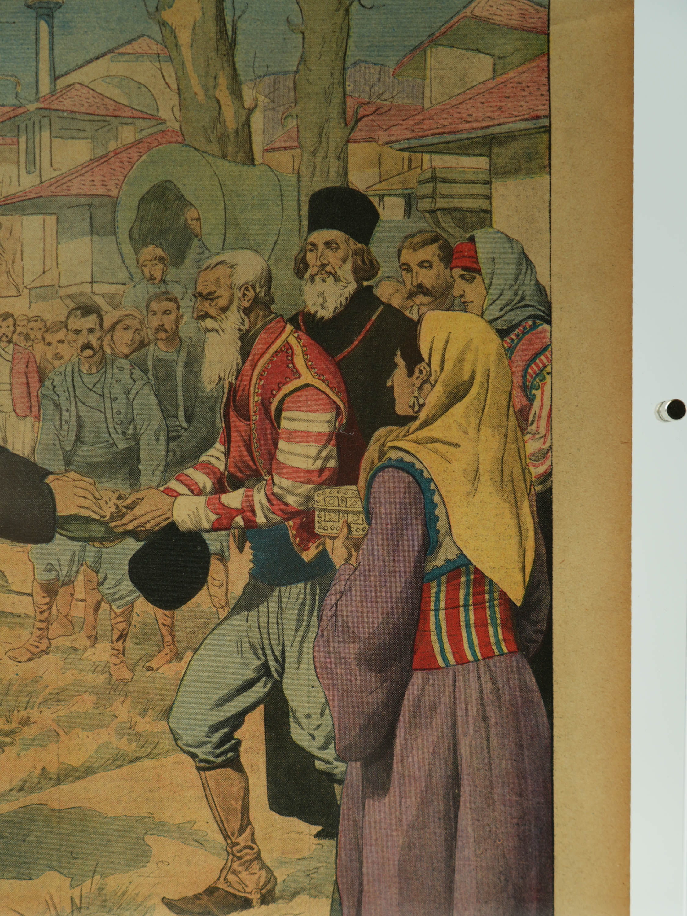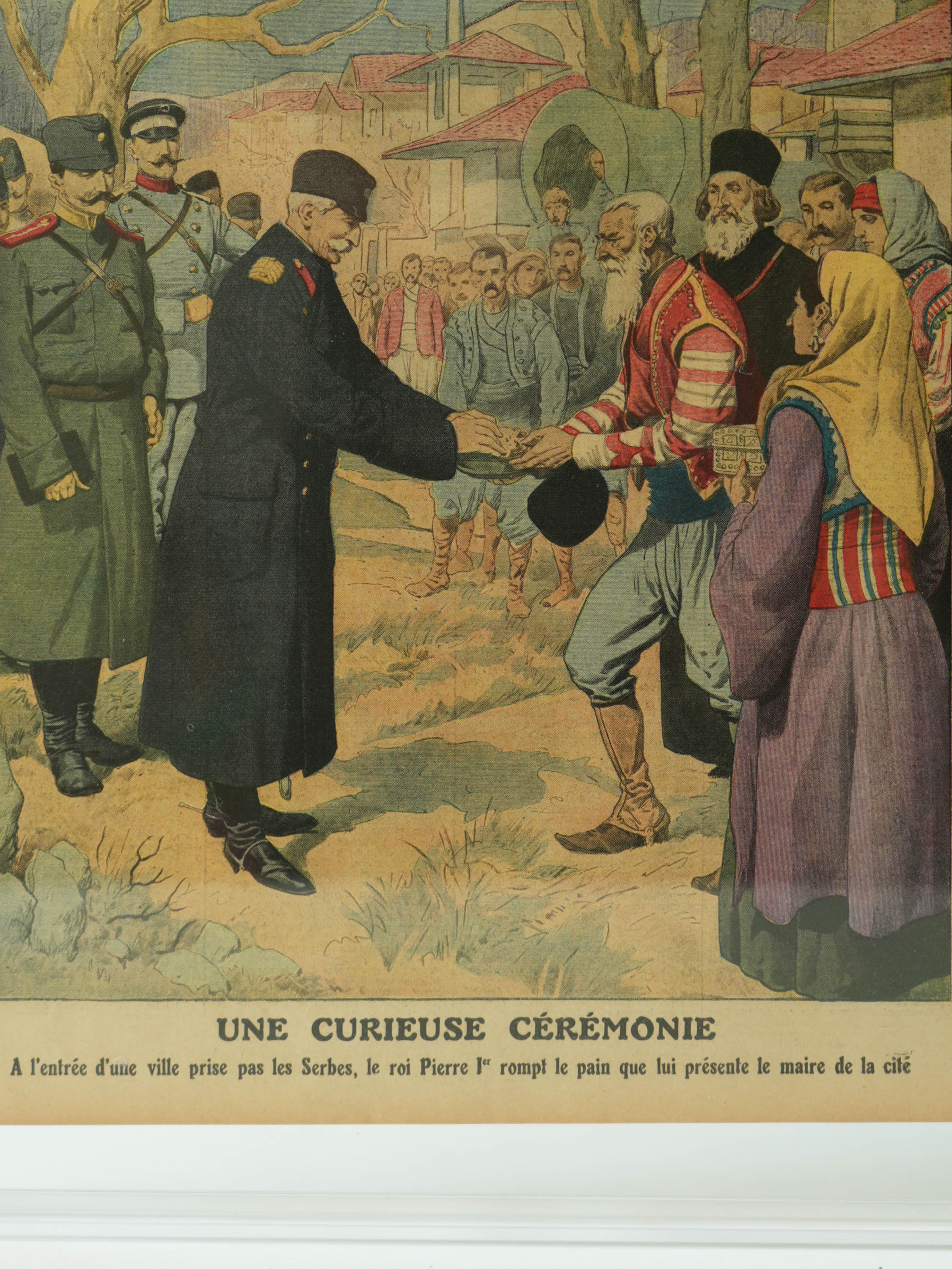 一个令人兴奋的仪式 在塞尔维亚人占领的城市入口,国王彼得一世打破市长的面包