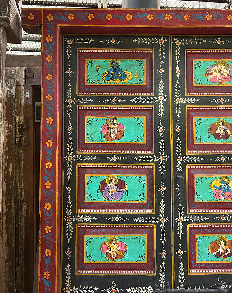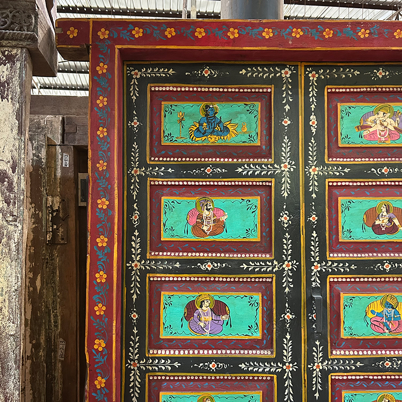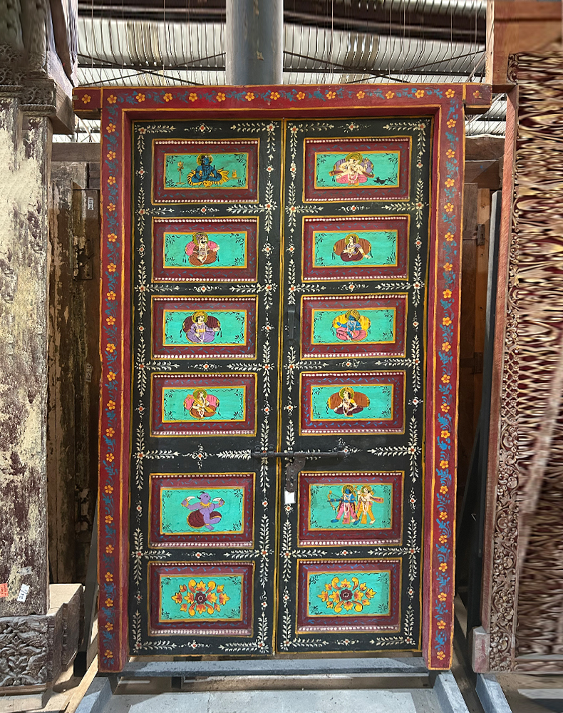 老木彩绘双开门129*12*195cm