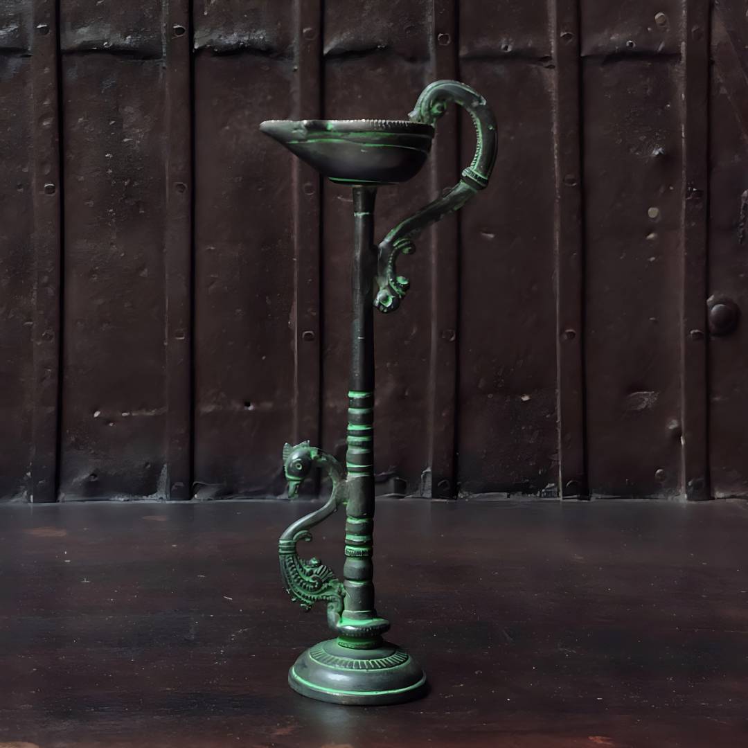 铜制油灯11*6*26cm