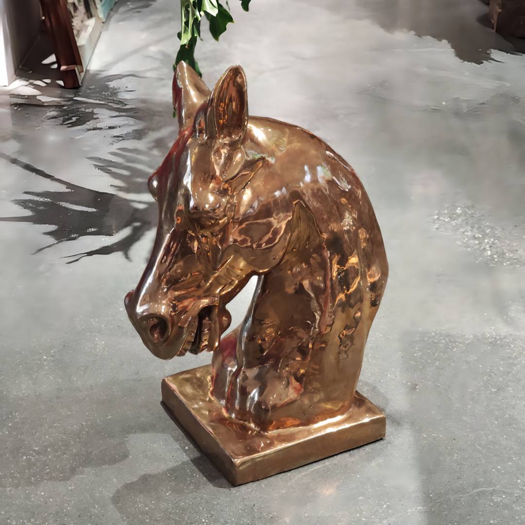 铜制马头摆件31.5*31*74cm
