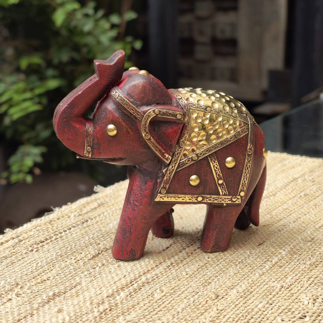 嵌铜片象摆件12*5*11cm