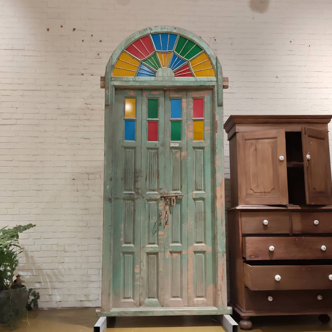 材质:实木辅料:铁+琉璃门外框长:106.5cm 厚:9cm 高:257cm 底部长:115.5cm门内框长:90cm 高:194cm