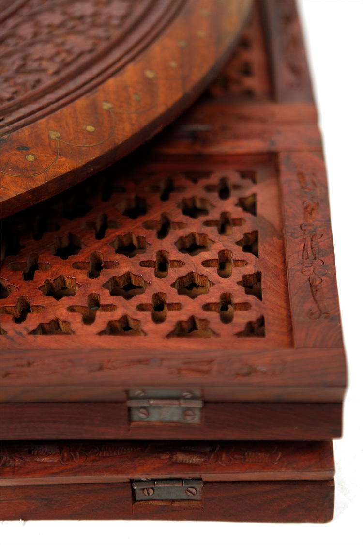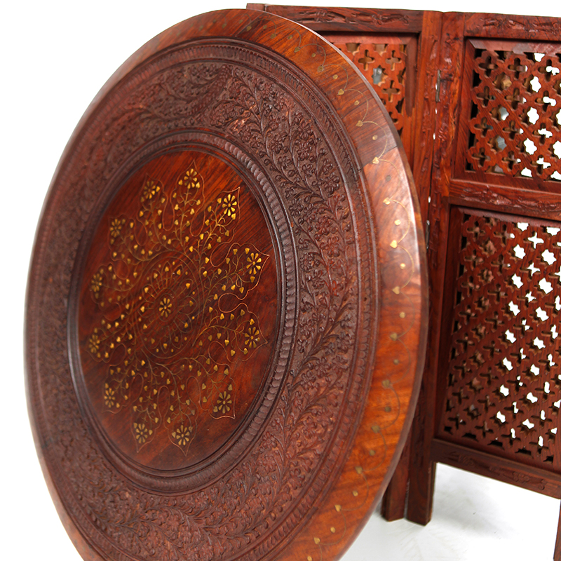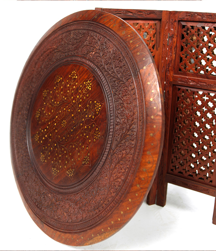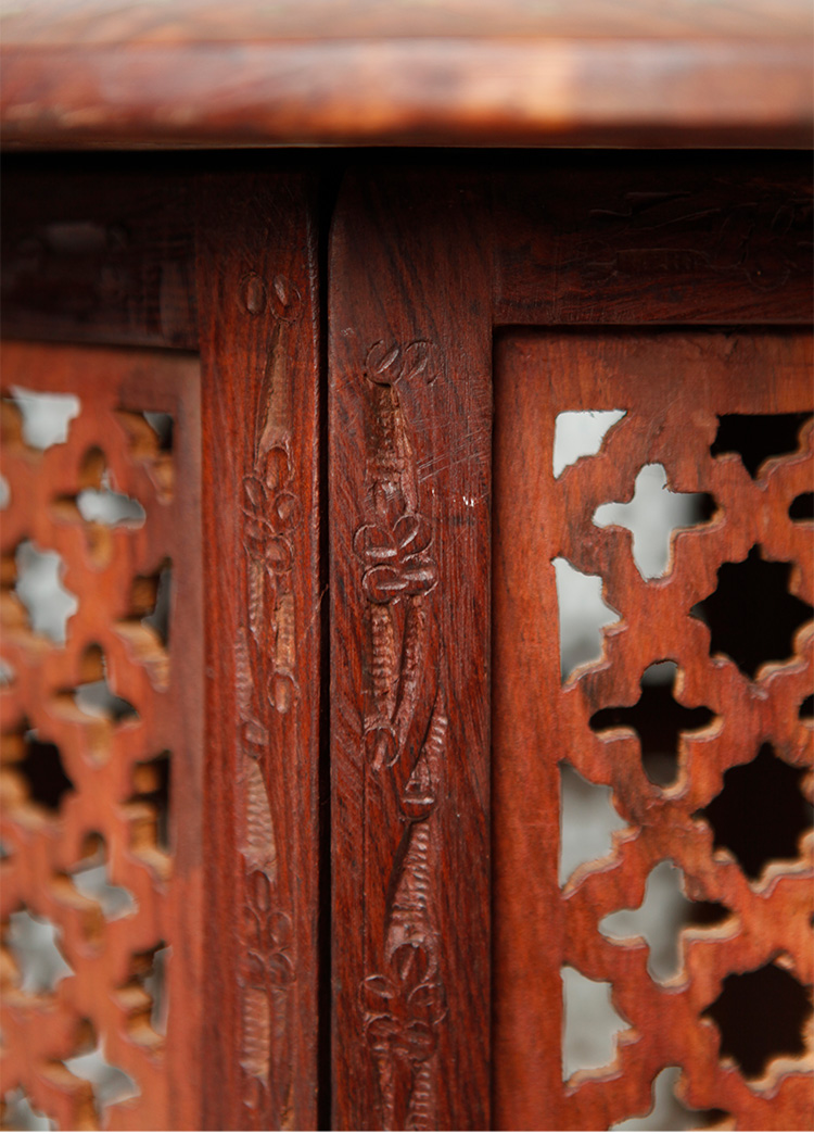 将古典的历史底蕴融入现代都市生活之中,不仅迎合了现下流行的居室复古风,还为居室营造一份宁静祥和的文雅氛围。手工制作一直是印巴文化家具的一大特色,精致的雕刻与独到的嵌铜片设计更是印度仿古家具的重头戏。致力于用艺术的方式打造出雅典的异域风情,这款酸枝木的桌子便是最好的诠释。