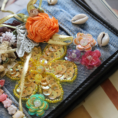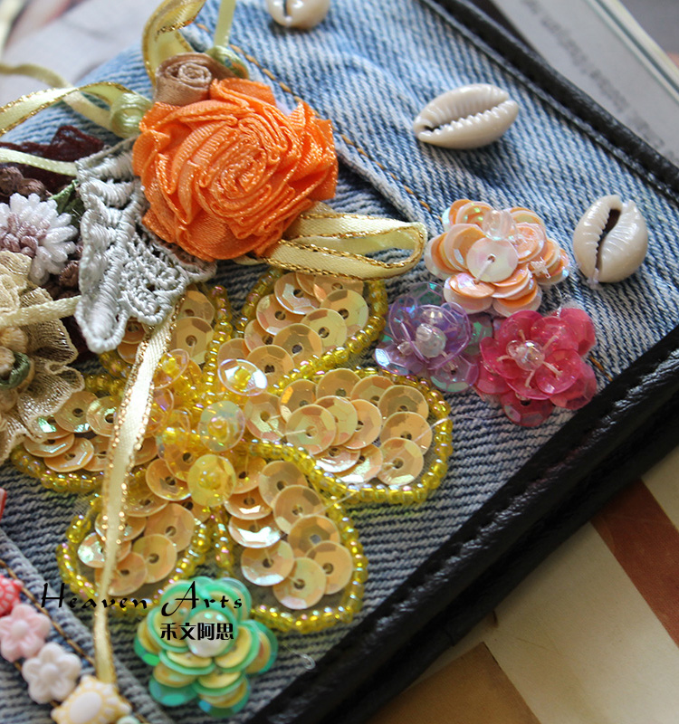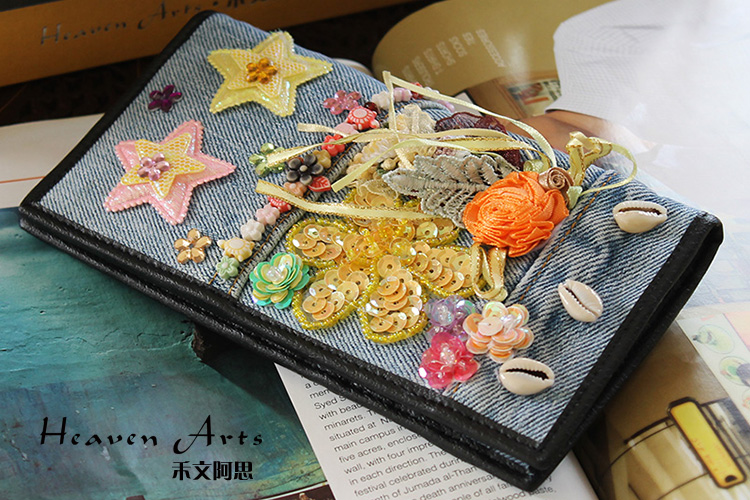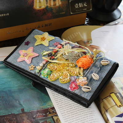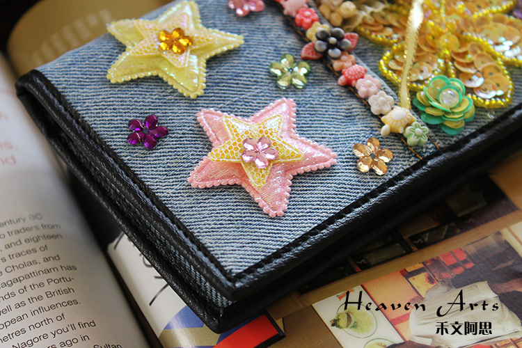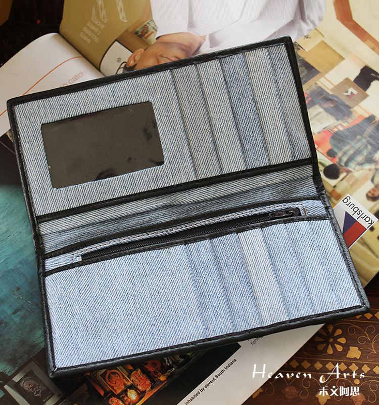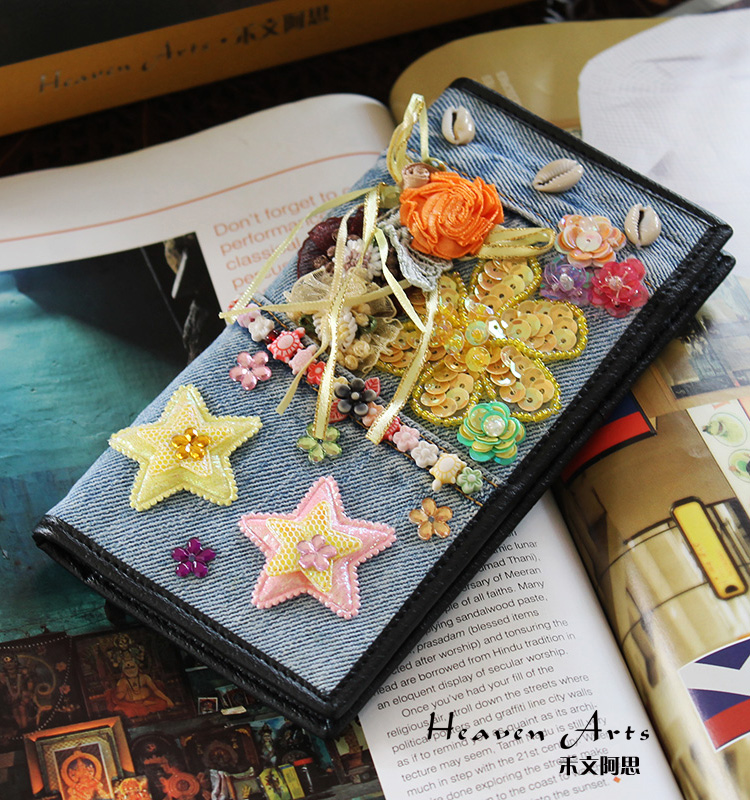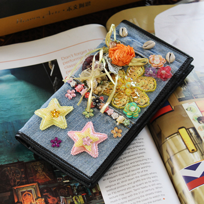 牛仔绣花钱包