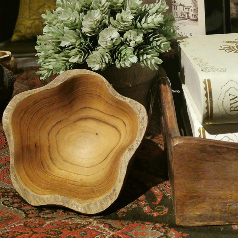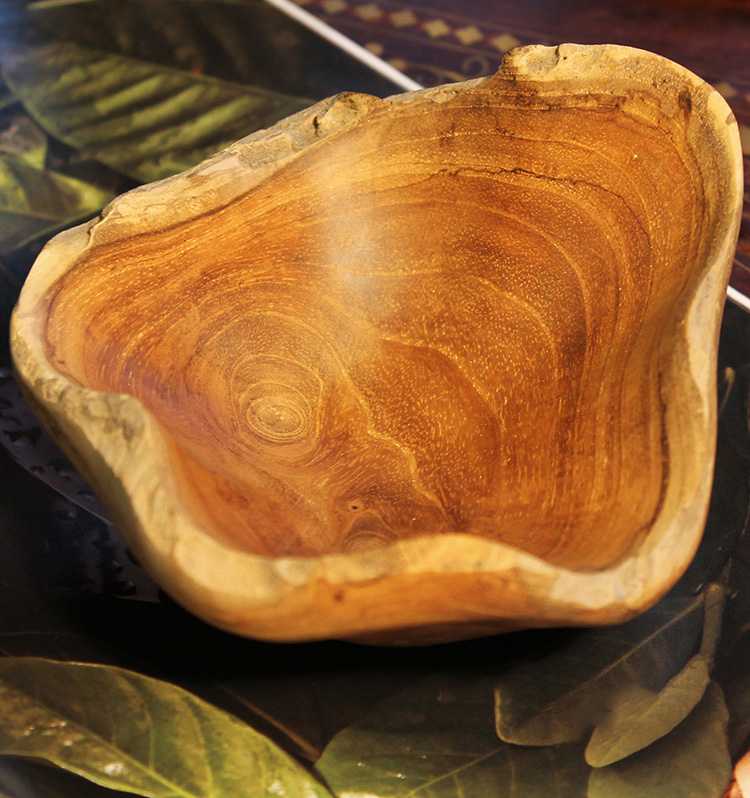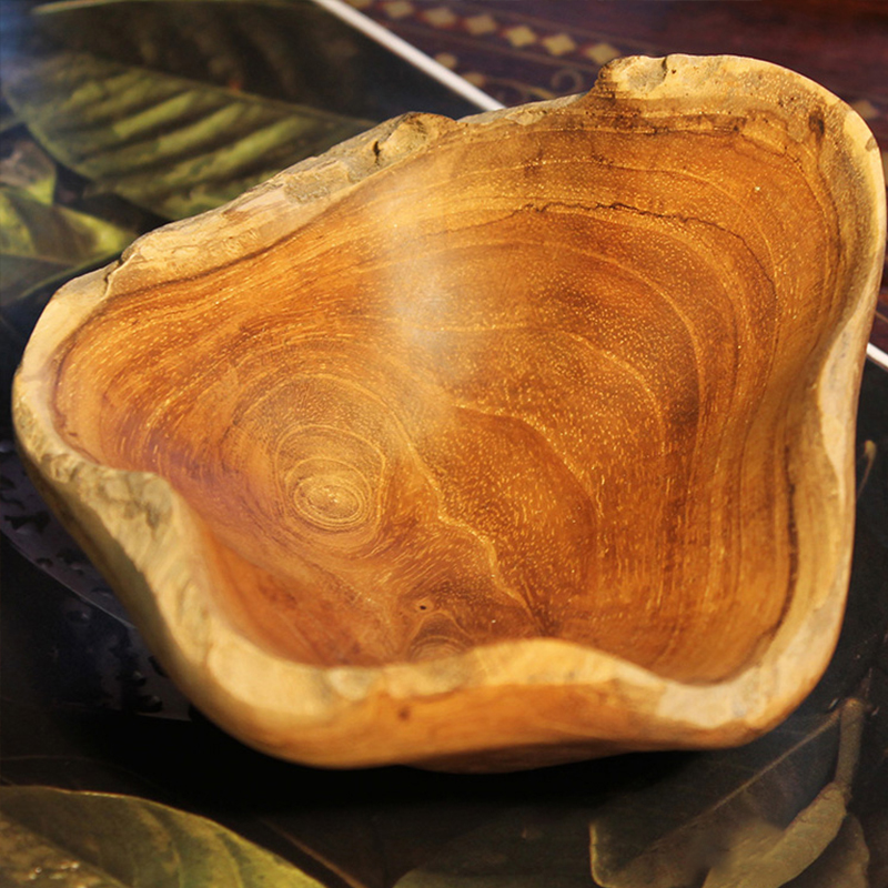 东南亚饰品柚木装饰碗摆件创意客厅玄关茶几桌面钥匙收纳碗工艺品11*9*5cm