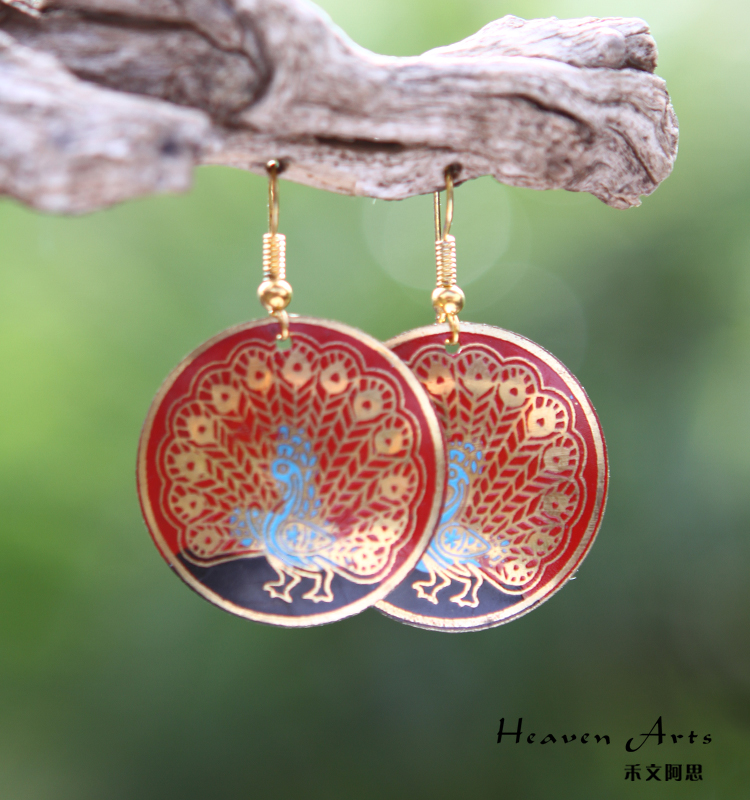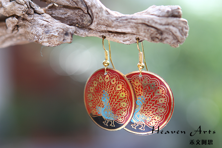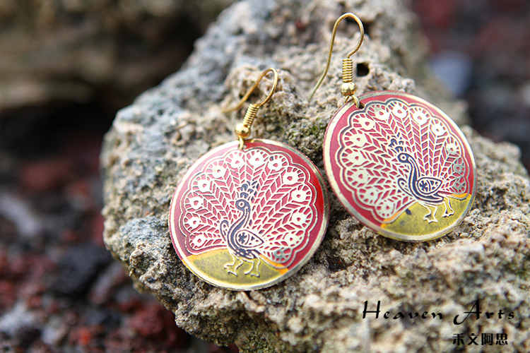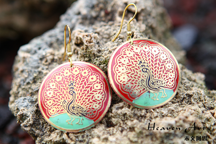 彩绘孔雀耳环