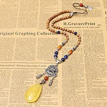 老山檀配水滴形蜜蜡银项链